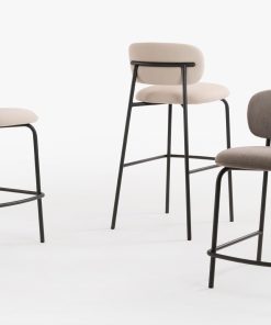 The inspiration lies in an interplay between soft and solid materials. ‘The metal backrest is pressed into the soft, supportive back cushion, creating an intriguing image that is similar to pushing the two elements into each other. Visualizing both structure and comfort at the same time,’ explains designer Khodi Feiz. ‘The back support cradles the backrest, and in turn, the chair cradles the user.’ The Aloa bar stool program consists of three bar stools with a fixed seat height