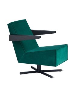 The Press Room Chair was designed by Gerrit Rietveld in 1958 for the UNESCO building in Paris. Rietveld designed the armchair as a comfortable lounge chair at the reading table for journalists in the press room. However, due to the tight budget and limited time, the design was not implemented and Rietveld was forced to replace it with furniture he had made earlier that year for the World Exhibition in Brussels. Fortunately, the original designs, drawings, and models have been preserved, so that the Press Room Chair was released in 2014.