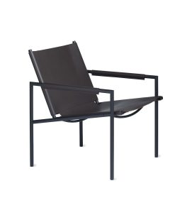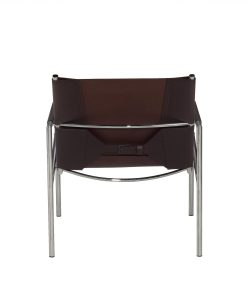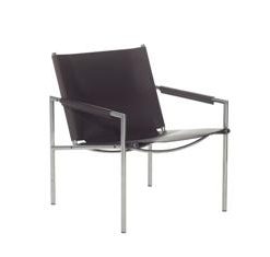 Materials: Martin Visser Easy Chair. Steel frame with black powder coat or matte chrome finish. Saddle leather seat, back and arm wrap in natural, dark brown or black.