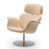 Materials: Martin Visser Easy Chair. Steel frame with black powder coat or matte chrome finish. Saddle leather seat, back and arm wrap in natural, dark brown or black.